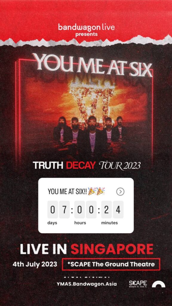 Poster for You Me At Six 2023 Singapore Show